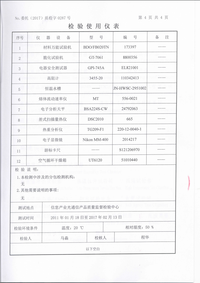 红色高密度聚乙烯电缆料检验报告2017.1.20