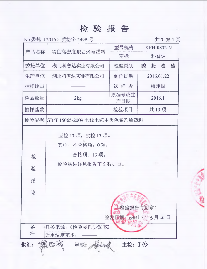 上一篇:2016年高密度聚乙烯护套料检测报告(KPH-0802)